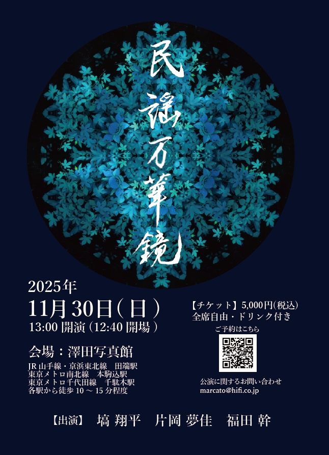 株式会社ハイファイMARCATO主催公演『民謡万華鏡』(11/30上演)に歌手/ナレーターとして出演いたします