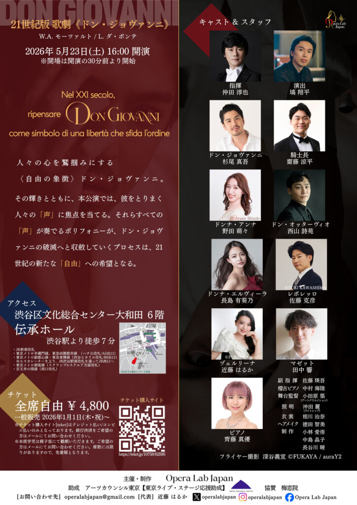 Opera Lab Japan 21世紀版 歌劇『ドン・ジョヴァンニ』(5/23上演)の演出を手がけます